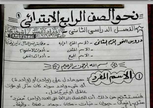 مراجعة قواعد نحو الصف الرابع الابتدائي 2018